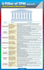 Bảo trì năng suất toàn diện (TPM) là một chiến lược sản xuất tinh gọn nhằm đạt được không sự cố, không có lỗi và không có tai nạn thông qua việc chăm sóc thiết bị chủ động và sự tham gia của nhóm. Khuôn khổ của nó dựa trên tám trụ cột liên kết với nhau thúc đẩy cải tiến liên tục trong các hoạt động.