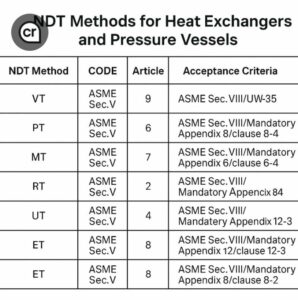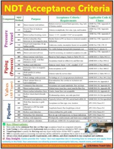 Tiêu chí chấp nhận NDT cho các thành phần khác nhau