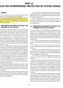 Phần 13 của ASME Mục XIII đề cập đến các quy tắc về bảo vệ quá áp bằng thiết kế hệ thống. Trong “Phần Chung”, có đề cập rõ ràng rằng thiết bị chịu áp suất có thể được trang bị bảo vệ quá áp bằng thiết kế hệ thống thay cho thiết bị giảm áp (PRD) hoặc các PRD nếu tất cả các điều khoản của phần này được đáp ứng.