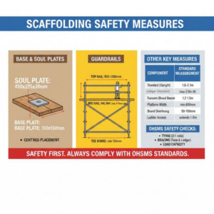 Giàn giáo an toàn bao gồm các thành phần cấu trúc để hỗ trợ và các tính năng an toàn để ngăn ngừa ngã và sụp đổ. Các yếu tố này đảm bảo sự ổn định, phân bổ tải trọng và bảo vệ người lao động theo các tiêu chuẩn như hướng dẫn của OSHA.