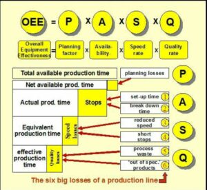 OEE=Mộtvmộttôilmộtbtôiltôity×Performmộtnce×QumộtltôityOEE=Availability×Perfhoặcmance×Quality