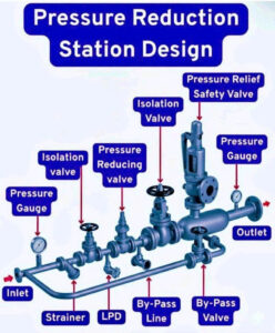 + Đường ống và van bypass – cung cấp dòng chảy trong trường hợp van giảm áp bị hỏng hoặc trong quá trình bảo trì.