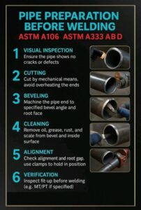 Việc tuân thủ các tiêu chuẩn như ASTM A106, ASTM A333, ASME B16.25, ASME IX đảm bảo mối hàn chắc chắn, giảm thiểu khuyết tật và kéo dài tuổi thọ của ống.