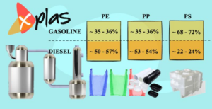 Polypropylene (PP) tạo ra phần chất lỏng đặc biệt giàu các hợp chất nhẹ. Polyethylene (PE/LDPE) thường tạo ra hỗn hợp naphtha, xăng và các chất cặn nặng hơn. Mặc dù có thể tạo ra lượng dầu lỏng cao (lên đến 82% trọng lượng), nhưng nó thường yêu cầu nhiệt độ phân hủy cao hơn một chút so với PS hoặc PP.
