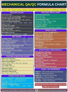 Một hướng dẫn công thức ngắn gọn dành cho các kỹ sư QA/QC, Hàn, NDT, Đường ống, Sơn phủ, Cơ khí & Chế tạo. Lưu lại, chia sẻ và sử dụng tại chỗ.