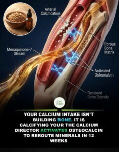Canxi là một khoáng chất “mù quáng”. Không có chất dẫn hướng phân tử, nó trôi nổi vô định trong máu và lắng đọng vào các mô mềm như thành động mạch và khớp, khiến chúng cứng lại. Đây là lúc Vitamin K2 (cụ thể là dạng MK-7) phát huy tác dụng. MK-7 kích hoạt một loại enzyme gọi là γ-glutamyl carboxylase. Enzyme này hoạt động như một công tắc hóa học kích hoạt hoàn toàn osteocalcin – protein chịu trách nhiệm liên kết canxi và gắn kết trực tiếp vào ma trận xương của bạn.