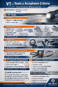 Kiểm tra trực quan (VT) được sử dụng để phát hiện các khuyết tật bề mặt có thể nhìn thấy, có thể ảnh hưởng trực tiếp đến tính toàn vẹn của mối hàn, độ bền cơ học và tuổi thọ sử dụng.