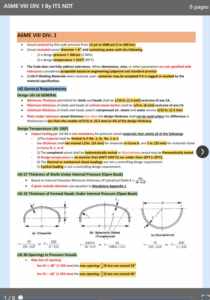 Đây là một số nguyên tắc cơ bản từ quy tắc liên quan đến thiết kế, chế tạo, thử nghiệm và kiểm tra bình chịu áp lực theo quy định ASME VIII Div. 1. Bản tóm tắt này cung cấp một cái nhìn tổng quan về các điều khoản và yêu cầu kỹ thuật chính được đề cập.