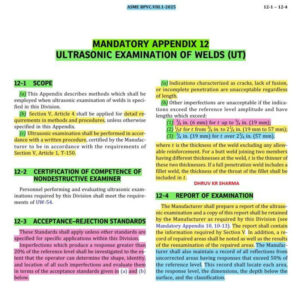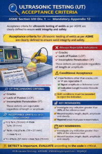 Phụ lục bắt buộc 12 của ASME BPVC Section VIII Division-1 định nghĩa rõ ràng cách đánh giá và chấp nhận hoặc từ chối các dấu hiệu UT.