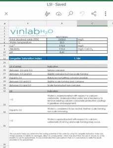 LSI = pH đo được – độ bão hòa pH (trong đó độ bão hòa pH phụ thuộc vào nhiệt độ, độ cứng canxi, độ kiềm và TDS).