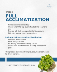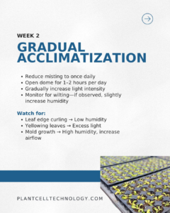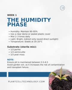 Đặt chúng trong khay có mái che hoặc dưới mái vòm trong suốt để độ ẩm tương đối duy trì cao (70–90%) trong 1–2 tuần.