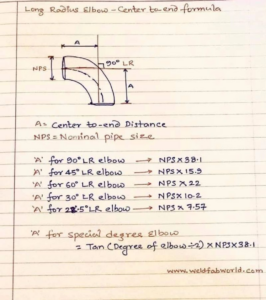 Kích thước bắt nguồn từ bán kính đường tâm R = 1,5 × NPS. Đối với co 90 °, từ tâm đến cuối A = R, vì tan (45 °) = 1.
