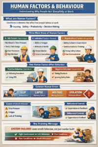 Các hành vi không an toàn liên quan đến các hành vi rủi ro của con người, chẳng hạn như bỏ qua các quy tắc an toàn hoặc thiếu đào tạo thích hợp, đi chệch khỏi các quy trình đã thiết lập.