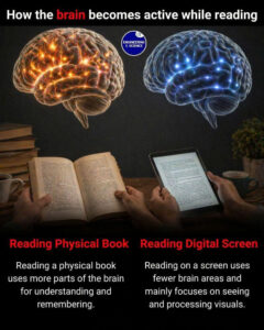 Mặt khác, việc đọc trên màn hình kỹ thuật số hoạt động hơi khác một chút. Mặc dù não bộ vẫn hoạt động, nhưng nó tập trung nhiều hơn vào xử lý hình ảnh. Màn hình thường khuyến khích đọc nhanh hơn, đôi khi được gọi là “đọc lướt”, trong đó mắt di chuyển nhanh qua văn bản thay vì từ từ tiếp thu nó. Vì vậy, não bộ có thể không tương tác sâu sắc với nội dung. Thông tin được xử lý nhanh hơn, nhưng có thể không lưu lại trong trí nhớ lâu.