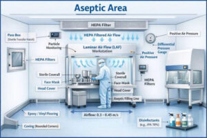 👉 Khu vực vô trùng là môi trường được kiểm soát tuân thủ GMP, được thiết kế để duy trì độ vô trùng trong quá trình sản xuất các sản phẩm dược phẩm vô trùng.