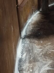 Dầu hỏa (hoặc một loại dầu có độ nhớt thấp tương tự như dầu diesel) được phun hoặc bôi vào khe hở giữa vỏ và đáy.