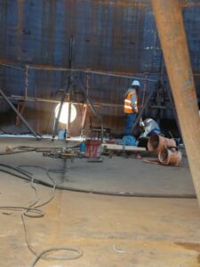 Các khu vực rò rỉ được đánh dấu, sửa chữa bằng cách mài và hàn, sau đó kiểm tra lại.