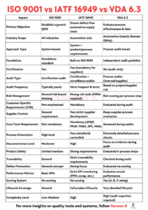ISO 9001 so với IATF 16949 so với VDA 6.3