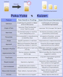 Poka-Yoke so với Kaizen Poka-Yoke và Kaizen là những khái niệm sản xuất tinh gọn từ Hệ thống sản xuất Toyota, cả hai đều nhằm mục đích nâng cao chất lượng và hiệu quả nhưng thông qua các phương pháp riêng biệt. Định nghĩa Poka-Yoke là một kỹ thuật chống lỗi được thiết kế để […]