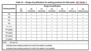 Trình độ thợ hàn (Vị trí) theo: 1. ASME PHẦN IX 2. AWS D1.1 3. ISO 9606-1