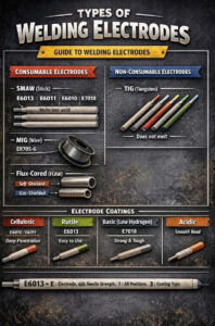 Các loại điện cực hàn Điện cực hàn, còn được gọi là que hàn, được phân loại chủ yếu theo loại lớp phủ, vật liệu và hệ thống đánh số AWS cho hàn que (SMAW). Các loại phổ biến bao gồm các loại dành cho thép nhẹ như E6010, E6011, E6013 và E7018, mỗi loại […]
