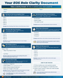 Tài liệu làm rõ vai trò EOS của bạn Trong Hệ thống vận hành doanh nghiệp (EOS), “Tài liệu rõ ràng vai trò EOS” thường đề cập đến Biểu đồ trách nhiệm giải trình và các tài liệu xác định vai trò hỗ trợ của nó, cùng nhau làm cho mọi chỗ ngồi, vai trò và […]
