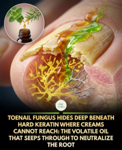 Nấm móng chân (nấm móng) phát triển mạnh sâu bên dưới móng tay keratin cứng, nơi các loại kem bôi ngoài da thường không thẩm thấu hiệu quả. Tinh dầu dễ bay hơi, như dầu oregano hoặc dầu cây trà, có thể thấm qua do trọng lượng phân tử thấp và đặc tính dung môi, có khả năng đến vị trí nhiễm trùng để vô hiệu hóa nấm ở gốc.