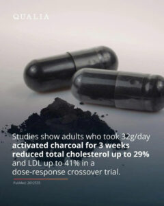 Trong một thử nghiệm chéo liều lượng – đáp ứng, những người tham gia đã dùng 4, 8, 16 hoặc 32 g than hoạt tính mỗi ngày trong khoảng thời gian ba tuần. Ở liều cao nhất, cholesterol LDL giảm tới 41%.