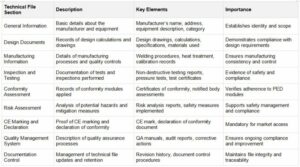 Hồ sơ kỹ thuật là tài liệu thiết yếu chứng minh sự tuân thủ các yêu cầu của PED. Hồ sơ chứa thông tin chi tiết về thiết kế, sản xuất, thử nghiệm và an toàn, cho phép các cơ quan chức năng xác minh sự tuân thủ và đảm bảo an toàn sản phẩm. Việc quản lý hồ sơ kỹ thuật đúng cách, bao gồm cả việc cập nhật và kiểm soát truy cập, là rất quan trọng để duy trì tính minh bạch, khả năng truy xuất nguồn gốc và tuân thủ quy định trong suốt vòng đời sản phẩm.