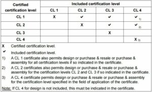 Các chứng chỉ được phân loại dựa trên các cấp độ chứng nhận (CL) được định nghĩa trong EN 15085-2.