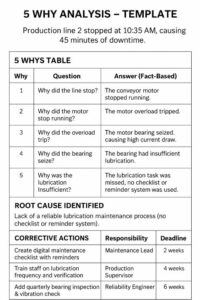 Nguyên nhân gốc rễ: Công việc bôi trơn bảo trì không được thực hiện đáng tin cậy (lỗi quy trình).