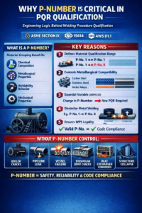 P-Number là một hệ thống nhóm vật liệu được xác định trong ASME Phần IX (QW-420) phân loại kim loại cơ bản dựa trên khả năng hàn, thành phần và tính chất cơ học tương tự. Nó đơn giản hóa trình độ hàn bằng cách cho phép một Hồ sơ đánh giá quy trình (PQR) duy nhất được thử nghiệm trên một vật liệu trong nhóm Số P để đủ điều kiện quy trình hàn cho các vật liệu khác trong cùng nhóm, tùy thuộc vào các biến thiết yếu như độ dày và xử lý nhiệt.