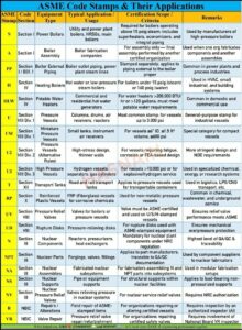 Nhìn chung, những con tem này đảm bảo cho các cơ quan quản lý, khách hàng và ngành công nghiệp rằng thiết bị đáp ứng các tiêu chuẩn chất lượng và an toàn nghiêm ngặt, cho phép sử dụng an toàn trong các ứng dụng công nghiệp liên quan đến bình chịu áp lực, nồi hơi, đường ống và các hệ thống liên quan. Việc tuân thủ các mã ASME và việc sử dụng các tem này là không thể thiếu để chứng nhận nhà sản xuất, chấp nhận thiết bị và độ tin cậy hoạt động trong các lĩnh vực công nghiệp.