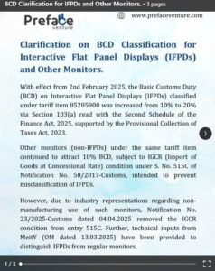 Làm rõ về phân loại BCD cho màn hình phẳng tương tác (IFPD) và các màn hình khác lakshmisri.com Màn hình phẳng tương tác: Ngân sách 2025 khơi dậy sự tò mò Phân loại Thuế quan Cơ bản (BCD) đối với Màn hình phẳng tương tác (IFPD) và các màn hình liên quan đã là […]