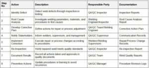 Xác minh và tài liệu: Sau khi thực hiện, mối hàn được kiểm tra lại để xác minh hiệu quả của hành động khắc phục. Toàn bộ quá trình được ghi lại để truy xuất nguồn gốc và tham khảo trong tương lai.